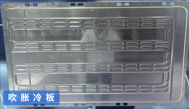 是將兩張鋁板,通過熱軋軋制在一起,在進行吹氣加壓形成流道,吹脹工藝液冷板生產效率高、成本較低,但強度較釬焊冷板稍有不足。
